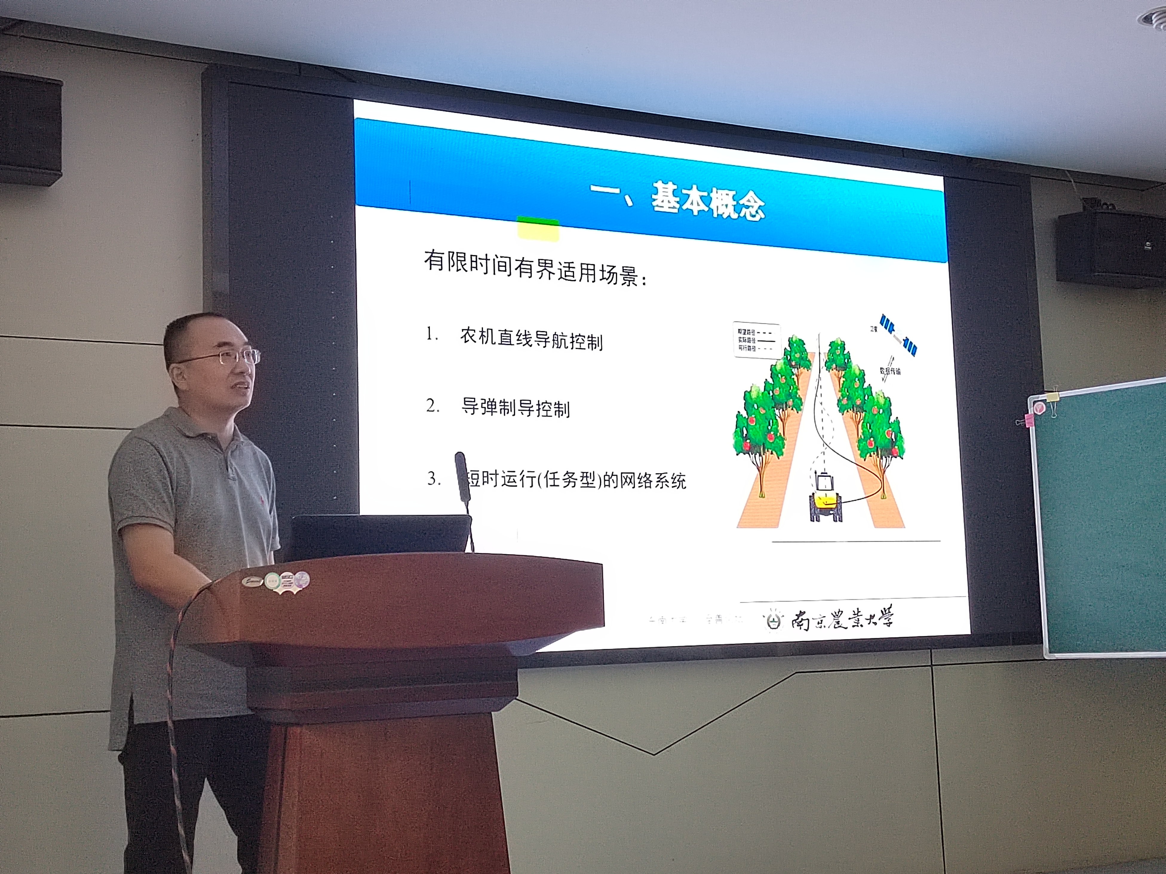 首先,南京农业大学林相泽教授作了题为“切换系统定量分析——有限时间有界初探”的报告。报告从现实背景出发,指出切换系统有限时间有界问题的研究意义,给出了切换系统有限时间有界的基本判定条件,并初步讨论切换系统在执行器饱和、采样控制等信息缺失条件下的有限时间有界问题。