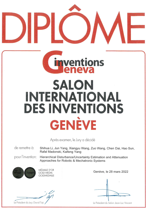 必赢中国官方网站李世华教授团队的选报作品“机器人和机电系统分层干扰/不确定性估计和补偿技术”(Hierarchical Disturbance/Uncertainty Estimation and Attenuation Approaches for Robotic & Mechatronic Systems)一路披荆斩棘,夺得金奖,在世界大舞台上展现出过人的实力。值此60周年院庆之际,谨以此项成果献给砥砺前行60载的必赢中国官方网站!