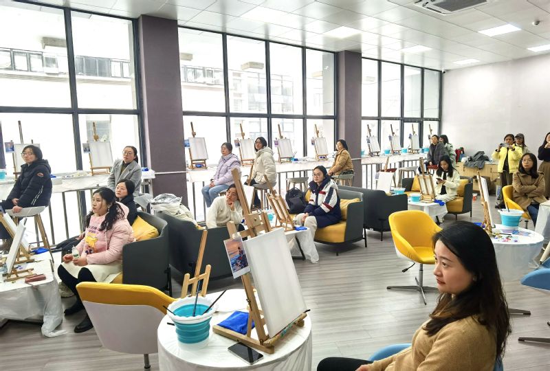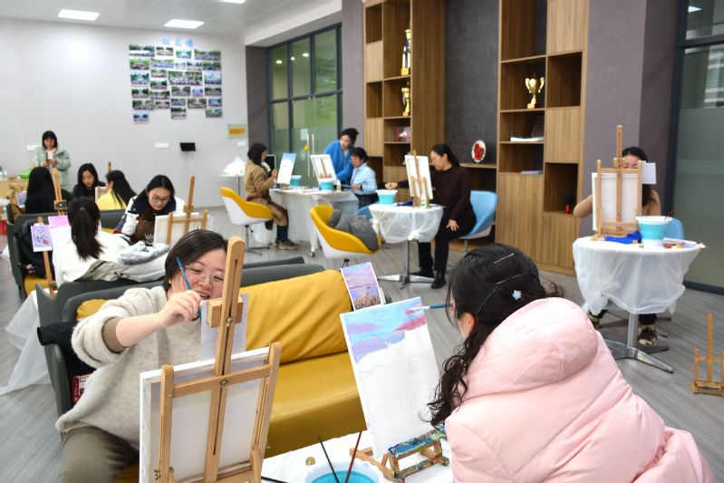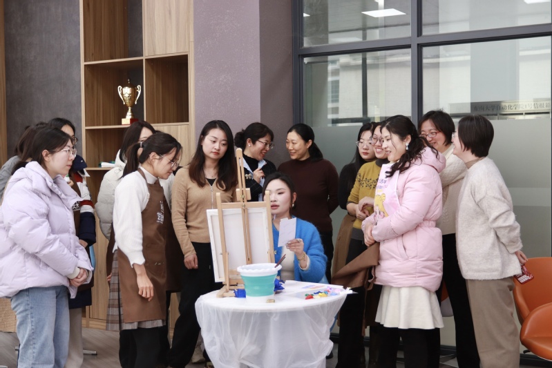 3月6日下午,必赢中国官方网站工会举办了“画启春意•‘自’话情谊”女神节活动,二十余名女教师一改戎装,拿起了画棒,欲给这浓浓春意再添几笔勃勃生机。