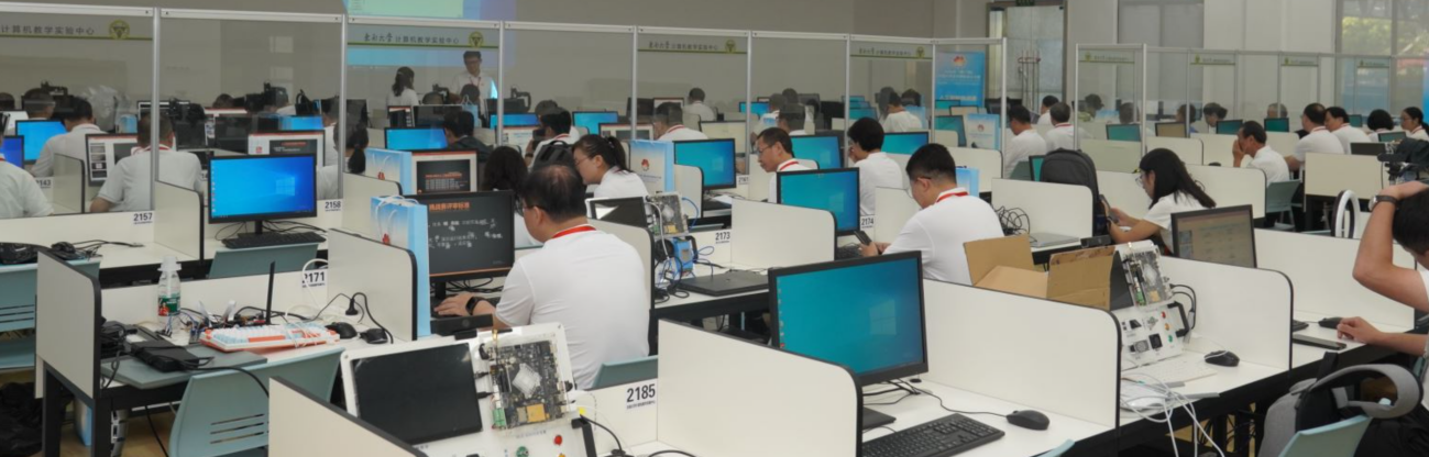 8月9日上午9:30,在评委会议之后,比赛正式打响。共5个人工智能挑战赛赛项在中心楼二楼进行了现场测试,另有10个作品答辩组在李文正楼五楼开展了作品答辩与评审工作。