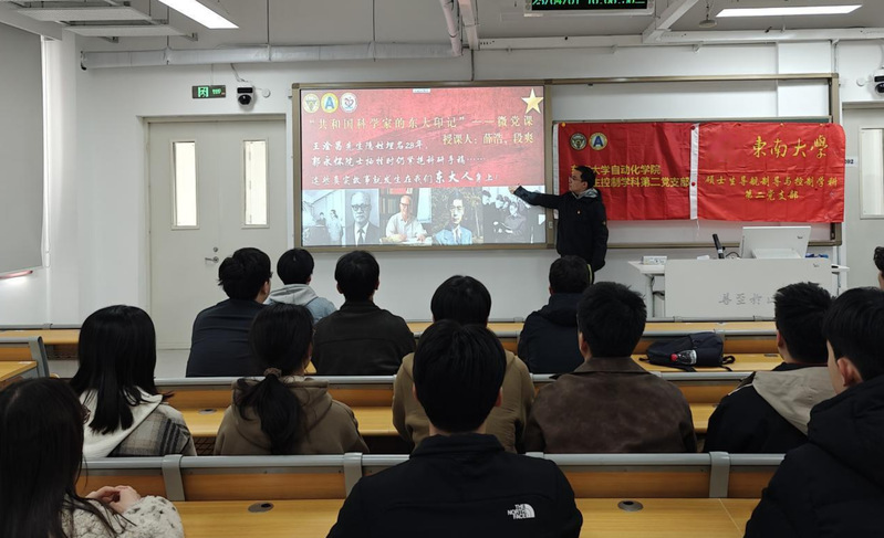 图1 硕士生控制学科第二党支部书记薛浩作“共和国科学家的东大印记”主题微党课