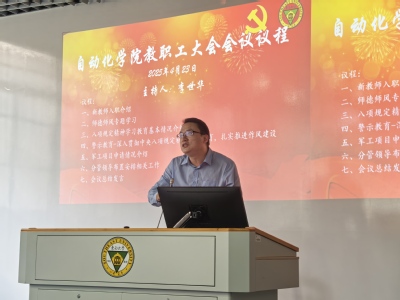 副院长温广辉邀请了学校科研院先进技术与装备办史君超介绍GF项目申请情况。温广辉深刻剖析了学院与国内其它兄弟高校科研力量比较的优势与差距,号召大家为 “强民拓军”的远大目标而奋斗。