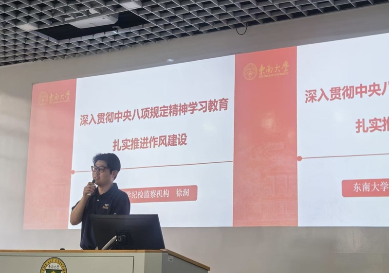 在警示教育环节,学校纪检监察机构纪检监察员徐润做“锲而不舍落实中央八项规定精神,健全防治形式主义、官僚主义机制”的宣讲。