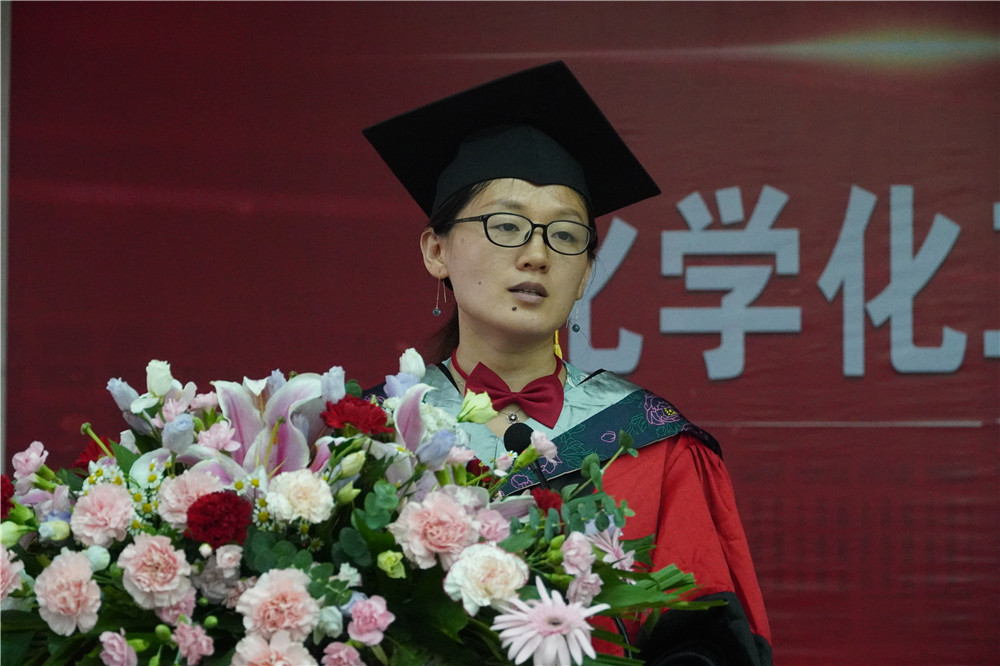 接着,师生代表发言。寇莹老师代表全体教师发言,在讲话中寇老师表达了对毕业生们的衷心祝福和不舍之情,同时也对他们充满了殷切希望:希望同学们为学要持之以恒,毕业离校,不是学习的结束,而是在更高起点上的开始。黄星星同学代表全体毕业生发言,黄星星同学回顾了大学四年的生活点滴,感恩学校和学院给予的关怀帮助,感谢老师们的谆谆教诲,感怀大学岁月和同窗之情。最后,她代表毕业生们表达了对学校、学院、老师、同学们的依依不舍之情,并向学院及师生们献上了真诚的祝福。