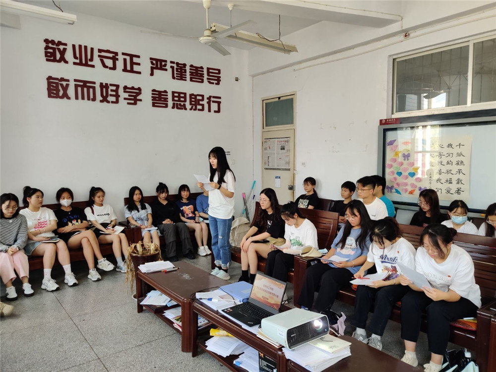 会议第一项:任春晓等8名发展对象分别汇报个人对党的认识、入党动机、本人履历、家庭和主要社会关系等情况。