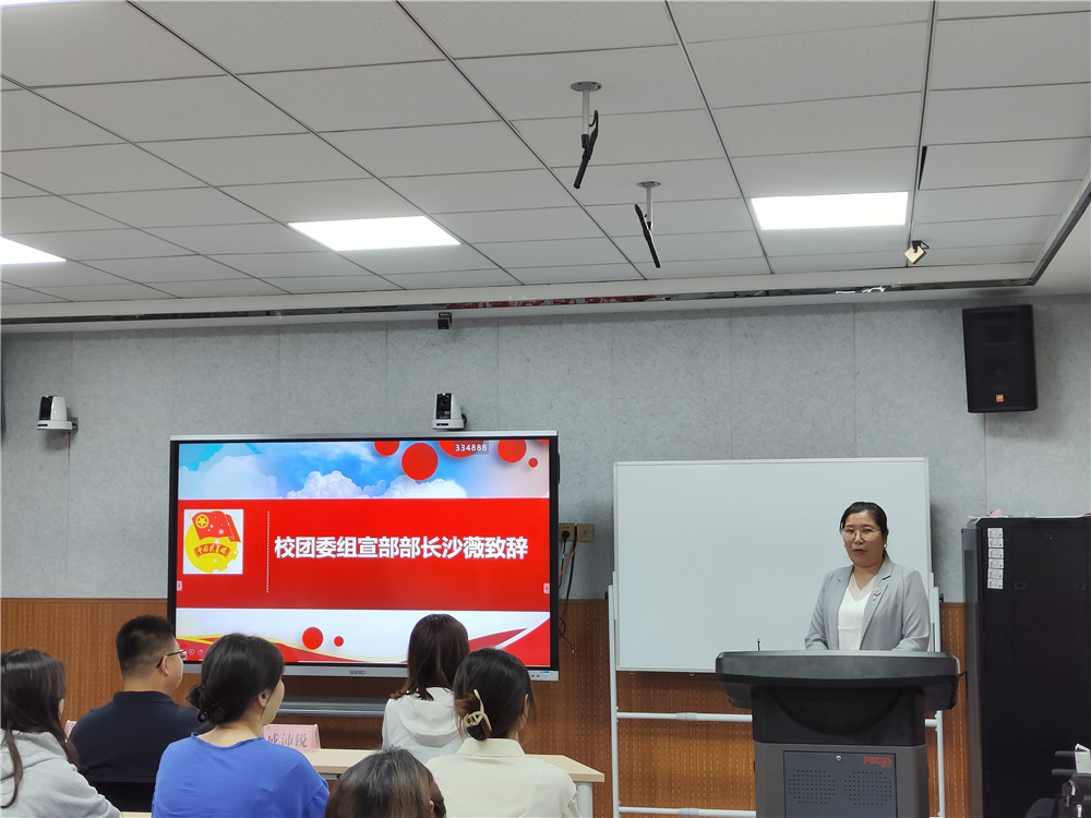 首先,沙薇代表校团委致辞。她要求beat365官网学生团干部应学好团务知识,持续做好基层团支部建设。接着,对团干部寄予了殷切的期望。最后,她勉励学生团干在自己的岗位上不负组织信任,勤勉务实工作,竭诚服务和联系广大团员及青年。