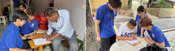 随后团队深入新喜村、枣树村开展问卷走访。志愿者们与当地群众亲切交谈,详细了解大家对乡村振兴背景下农产品发展的认知与建议。围绕本地汉江支流的生态保护情况进行调研,旨在通过整合信息,为汉江水支流保护建言献策。