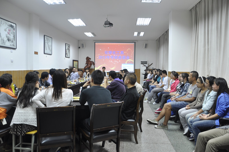 2012年9月25日晚上7:00,我系2013年考研座谈会在一片轻松愉快的气氛中于东校区第一会议室拉开了帷幕。到会的有党总支书记张立虎、系主任王浩东、副主任谢娟平、任课教师程昆木、赵小军、魏东伟、辅导员王瑜老师及毕业班考研的全体同学。整场会议由毕业班辅导员贾娟主持。