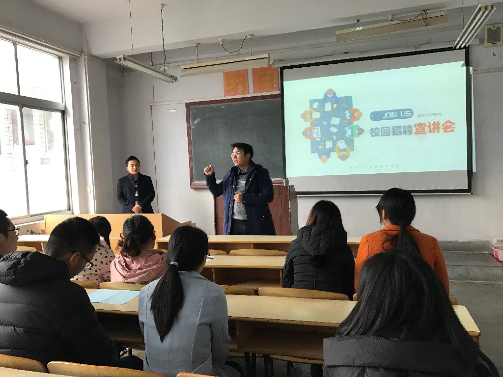 招聘公司在1315教室召开企业宣讲会,2017届毕业生30余人参加宣讲活动。公司招聘主管宋经理从企业的地理位置、运行现状、发展前景等方面进行了宣讲,以自身经历就大学生职业规划与就业指导方面进行了详细的讲解,并对同学们关心的薪资待遇、岗位职责、职业发展等问题进行了耐心解答,整个宣讲会气氛热烈。最后,广东清远千百丽纺织印染有限公司进行了现场面试,beat365官网有4位毕业生和该企业初步达成了就业意向。