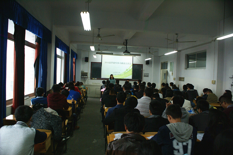 根据教学计划安排,经系党政联席会议研究,本学期第八周开始,全面启动我系毕业班学生实习实训和就业工作。11月5日中午13点整,我系在1516教室举办2016届毕业生实习、就业宣讲会暨专场招聘。陕西华银科技有限公司、陕西汉阴华能科技有限公司应邀参加,我系主任、书记、各专业实习指导老师、毕业班辅导员及全体2016届毕业生参加了本次会议。会议由副主任谢娟平主持。