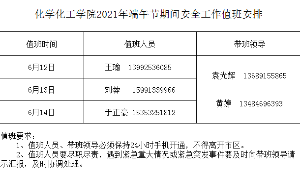 beat365在线唯一官网2021年端午节期间安全工作值班安排