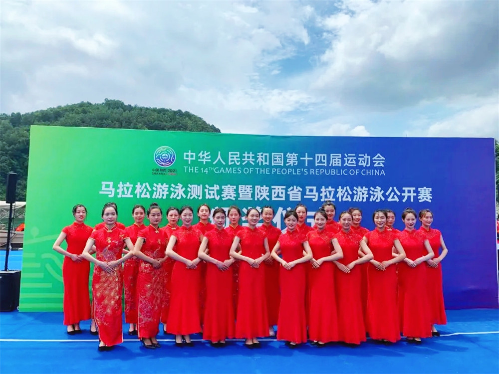 第十四届全国运动会马拉松游泳项目竞赛于9月12日至13日在安康瀛湖景区公开水域盛大举行,“小秦宝”们正式亮相,为赛事顺利进行提供高质量志愿服务保障。