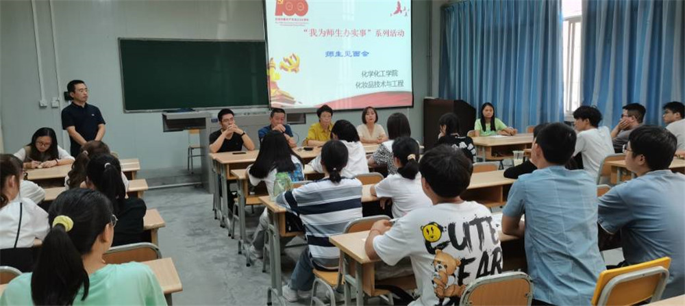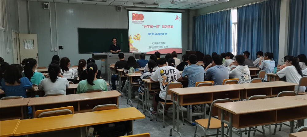 孟现星老师首先进行了“开学第一课”教育活动,介绍了化妆品行业的发展现状、专业培养目标、专业就业方向等情况,鼓励做一名懂感恩、有理想有追求的新时代大学生。参会教师介绍了自己所带课程,研究方向和对新生的期望。“师生见面会”上,同学们踊跃提问,参会领导详细解答同学们所提出的问题,细心为同学们解惑。袁光辉副院长详细地给同学们讲解了化妆品技术与工程专业实践、实习及就业情况,黄婷副院长给同学们介绍了学院第二课堂的设置,学业导师和科研社团的情况,鼓励同学们积极参与学科竞赛和各类科研项目。柳林院长鼓励同学们在学习之余通过各社团活动增强个人的情感道德价值观,做一个全面发展的人。最后王永东书记对本次活动做了总结,期望同学们能脚踏实地,善于思考学习,努力充实四年大学生活。