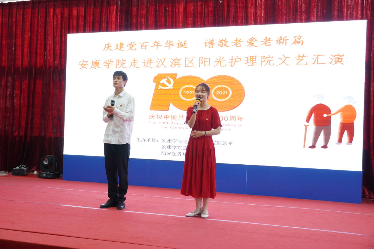 为庆祝中国共产党成立100周年,进一步弘扬志愿服务精神,6月10日下午,beat365在线唯一官网党总支学生党支部、机关直属十党支部、师生党员、积极分子等60余人走进阳光爱心护理院开展“庆建党百年华诞,谱敬老爱老新篇”志愿活动文艺汇演。