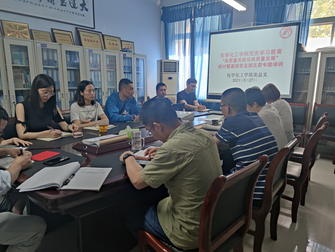 首先,王书记指出基层党建工作对推动学院中心工作的重要性,通过党史教育学习以及化工学院基层支委专题培训,要唤醒党支部支委的主题意识、明确责任、落实任务,在二级学院各项工作中起到模范带头作用。