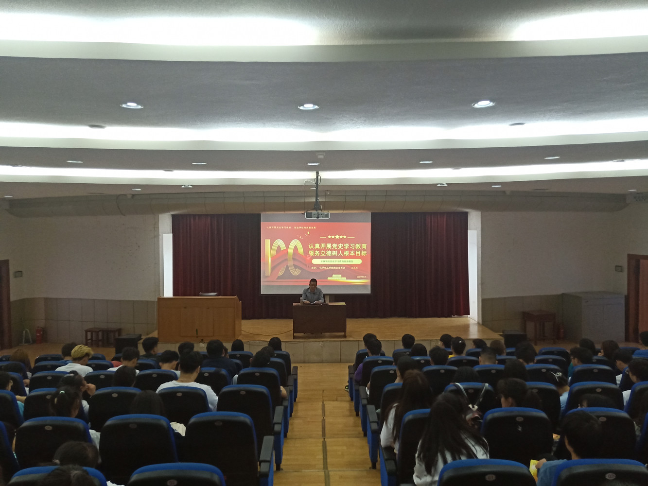 王永东书记从习近平总书记在党中央召开党史学习教育动员大会上的重要讲话精神出发,围绕充分认识开展党史学习教育的重大意义;全面了解中国共产党百年奋斗的光辉历程和历史性贡献;深刻把握党史学习教育的重点;学懂弄通做实习近平新时代中国特色社会主义思想,增强‘四个意识’、坚定‘四个自信’、做到‘两个维护’等四个方面为师生阐述开展党史学习教育的重大意义、重点内容和工作要求。并对学习党的历史、弘扬党的传统、指导具体工作提出要求。