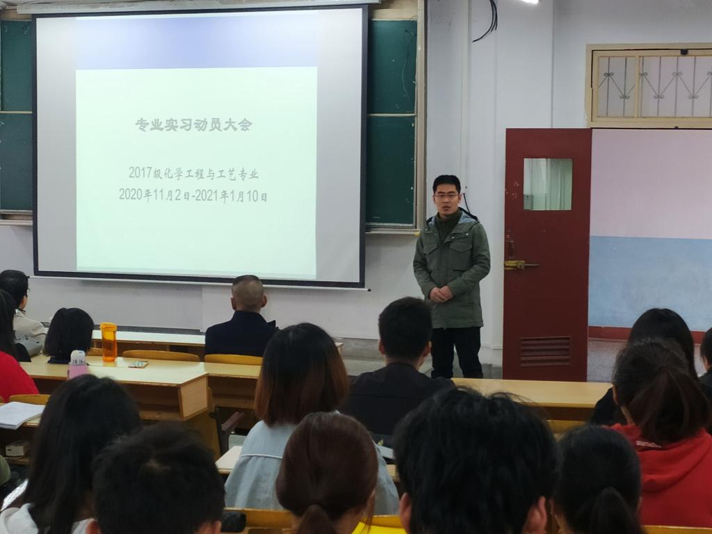 10月27日下午,beat365官网化工系2020年度专业实习动员大会在1510教室举行。学院院长柳林,书记王永东,副院长袁光辉出席会议,学院学生管理、实习指导老师及2017级化学工程与工艺专业75名实习生参加会议。会议由beat365官网化工系主任纪桢主持。