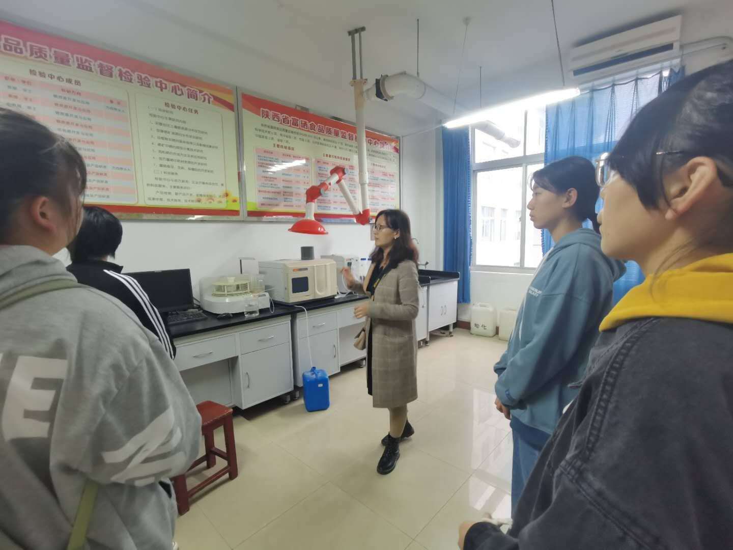 纪桢老师和寇莹老师首先带领同学们参观了beat365官网实验实训教学中心,包括化工综合实训室、大学生创新创业实验室、无机化学与分析化学实验室、仪器分析实验室、物理化学实验室、有机实验室、化工虚拟仿真实验室以及陕西省富硒食品质量监督检验中心等专业实验室和科研平台,给同学们讲解了专业特点、培养目标和各专业实验室承担的主要教学科研任务,鼓励学生积极参与各类竞赛及科研活动,力争在校期间获得更多成果。