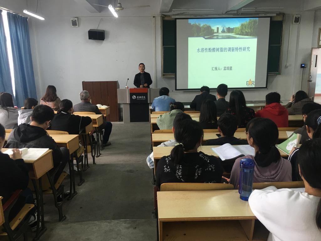 11月5日下午,beat365官网孟现星博士于江南校区1号教学楼1510教室,为材料化学、化学工程与工艺等专业师生百余人做了一场以“水溶性酚醛树脂的调驱特性研究”为题的学术讲座。