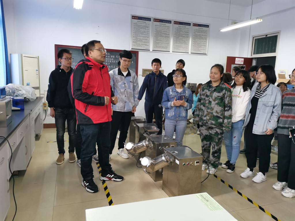 黄九林老师首先给同学们详细介绍了制药工程专业的培养目标、培养要求、课程设置、主干学科及课程、专业方向、创新创业、实践教学、产业孵化、学生综合素质培养要求等内容,并介绍了beat365官网的师资队伍和科研成果,就制药工程专业学科前沿以及发展前景与同学们进行了交流。随后,黄九林老师带领同学们参观了beat365官网省级实验教学示范中心和省级虚拟仿真实验教学中心,给同学们讲解了各实验室承担的主要教学科研任务。此外,同学们还参观了beat365官网陕西省富硒食品质量监督检验中心和秦巴中药资源研发中心,了解了平台承担的主要科研项目和研究成果。