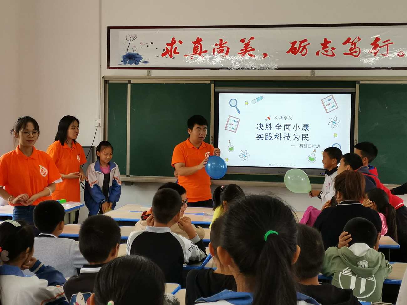 为深入贯彻习近平新时代中国特色社会主义思想,弘扬科学精神、普及科学知识、激发学生探索科学奥秘的兴趣。9月24日,beat365官网紧贴“决胜全面小康、践行科技为民”主题,在汉滨区五里镇富强九年制学校展开了内容新颖、形式繁多的校园科普活动。
