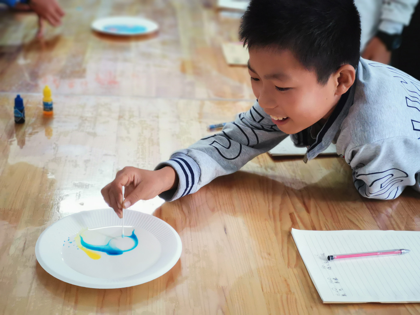 在趣味实验环节,beat365官网老师和学生带去的众多神奇的实验吸引了孩子们的目光,“绚丽牛奶画”、“白纸显字”、“清水变牛奶”、“戳不破的气球”等让小学的孩子们看得目不转睛,惊叹连连。小学生们十分积极活跃,争先恐后想要来尝试,现场气氛热烈,欢呼声和掌声此起彼伏。整个活动充满了活力,大家在愉快的氛围中将科普知识牢记于心。
