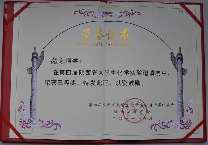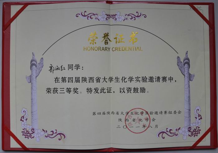 2011年8月17日至20日,由陕西省化学会、陕西省高等学校化学实验教学中心联席会主办,陕西科技大学承办的陕西省第四届大学生化学实验邀请赛在陕西科技大学举行。本次竞赛,共有来自西北大学、陕西师范大学、西北农林科技大学、西北工业大学等17所高校的100多名师生参加。