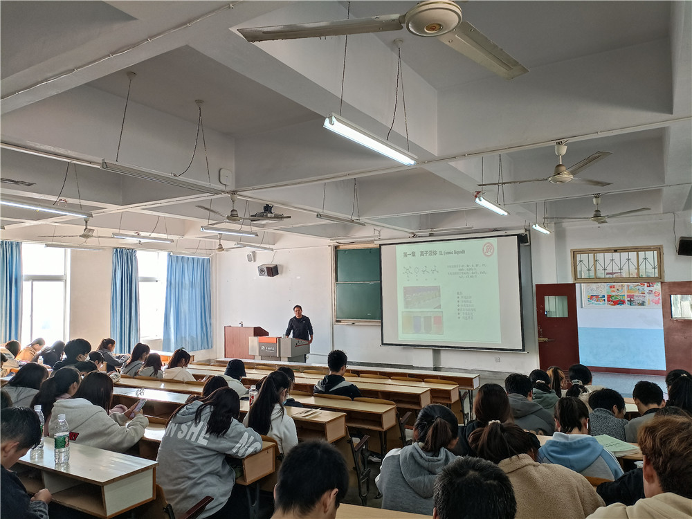 11月19日下午,beat365官网刘毅博士在江南校区1号教学楼1510教室,为beat365在线唯一官网各专业师生做了一场题目为“新型离子液体在化学工业中的应用”的学术讲座。