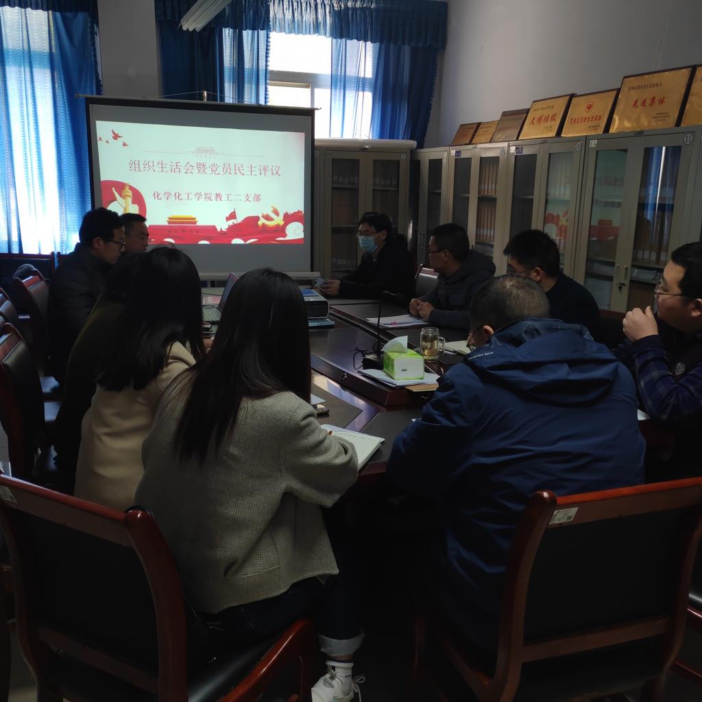3月10日下午,化工学院教工二支部召开2021年度组织生活会暨党员民主评议。会议由支部书记程昆木主持,全体党员参加。