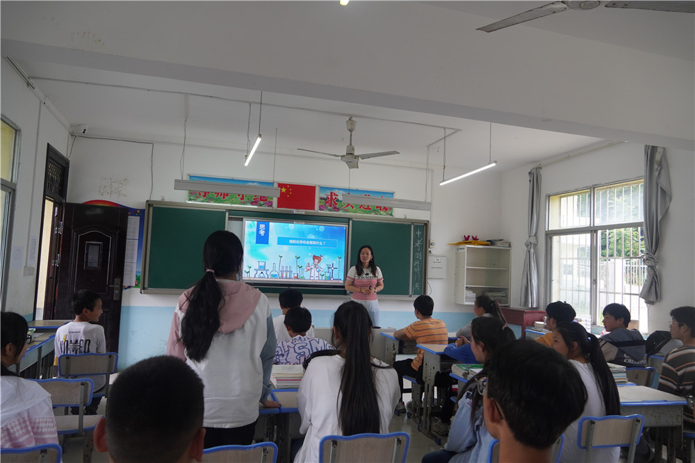 本次汉滨区县河镇财梁九年制学校的科普活动,覆盖了小学及初中部的学生。力图寓教于乐,将在课堂中所学的知识融入教学内容之中,课堂上,老师和科普团成员们共同带领同学们体验了“无中生有”、“魔法药水”、“牛奶可乐”等多个趣味化学实验,同学们的目光都被神奇的实验所吸引,在欢声笑语中向同学们展示了化学之美。科普团成员在展示实验现象的同时,也不忘深入浅出地为同学们讲解其中的化学原理。在掌握了化学基本原理后,老师和科普团成员对同学们动手实践进行了指导,他们用童真的双眼和稚嫩的手完成了一次次实验,在实验过程中,很多学生第一次触碰烧杯、试剂,即使其中遇到了不少小问题,在科普团成员的帮助之下也都迎刃而解,完成了自己的小实验。