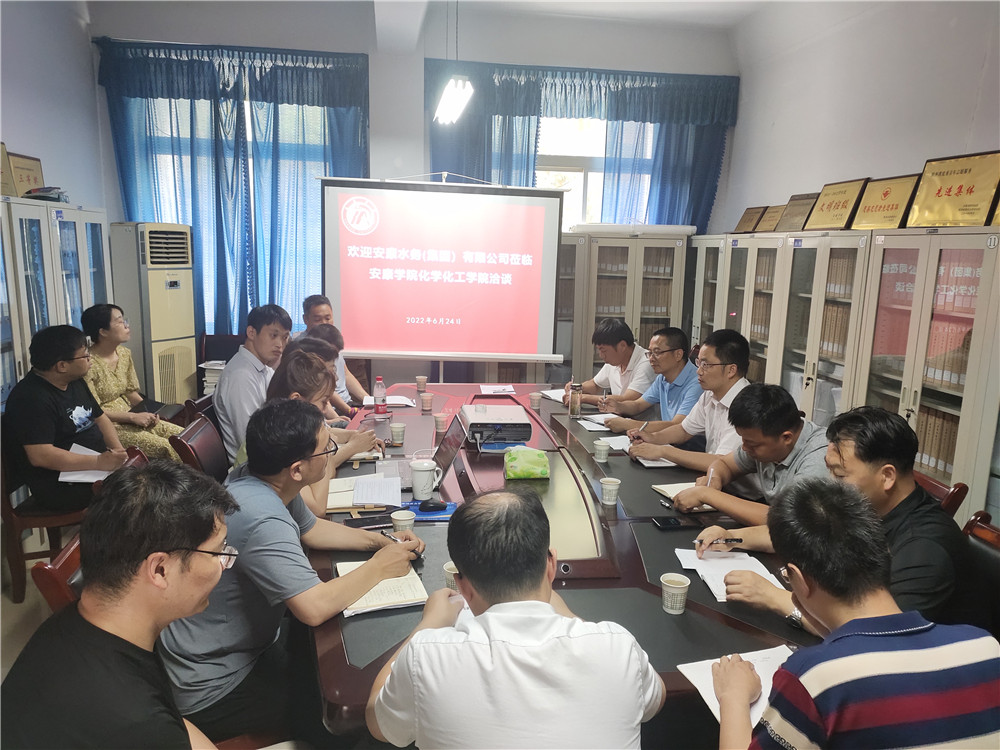 6月24日下午,安康水务(集团)有限公司一行8人来beat365官网洽谈校企合作事宜。柳林院长、黄婷副院长、应用化学系教师参与此次洽谈。
