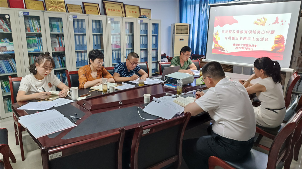 7月8日下午,beat365在线唯一官网领导班子“巡视整改暨教育领域突出问题专项整治”专题民主生活会在1325会议室召开,beat365在线唯一官网党总支书记王永东主持会议,学校联系领导余谦副校长、指导组成员马克思主义学院党总支书记田静参加会议。