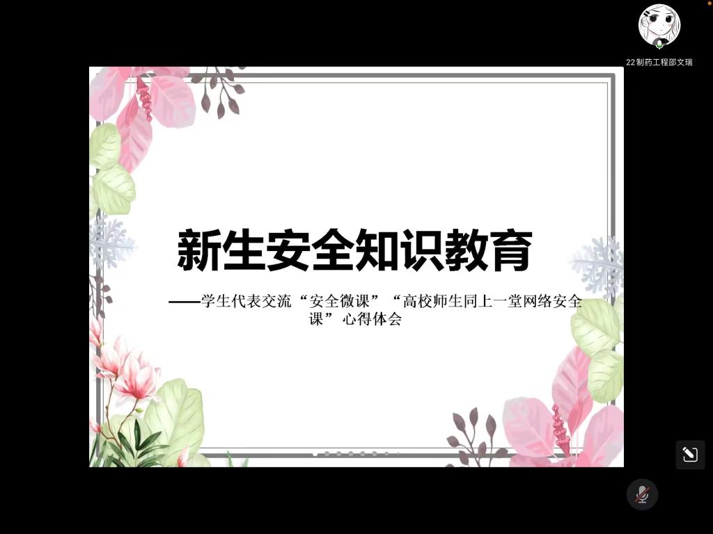 视频会上,辅导员老师对新同学的到来表示诚挚的欢迎,并就班级情况进行了简要介绍。接下来,优秀学生代表王昕和张昌结合自身经历和经验,就学习、生活、第二课堂活动等方面,为2022级新生进行讲解,使新同学可以在开学后更好的开启属于自己的大学生活。随后,新生代表付柯涛、李洋、劭文瑞、丁檬汉杨等四名同学就开学前学习“安全微课”“高校师生同上一堂安全网络教育课”情况和大家分享自己的学习体会。新生们纷纷表示在今后的生活中主动遵守校规校纪,提高安全意识,谨防网络诈骗。