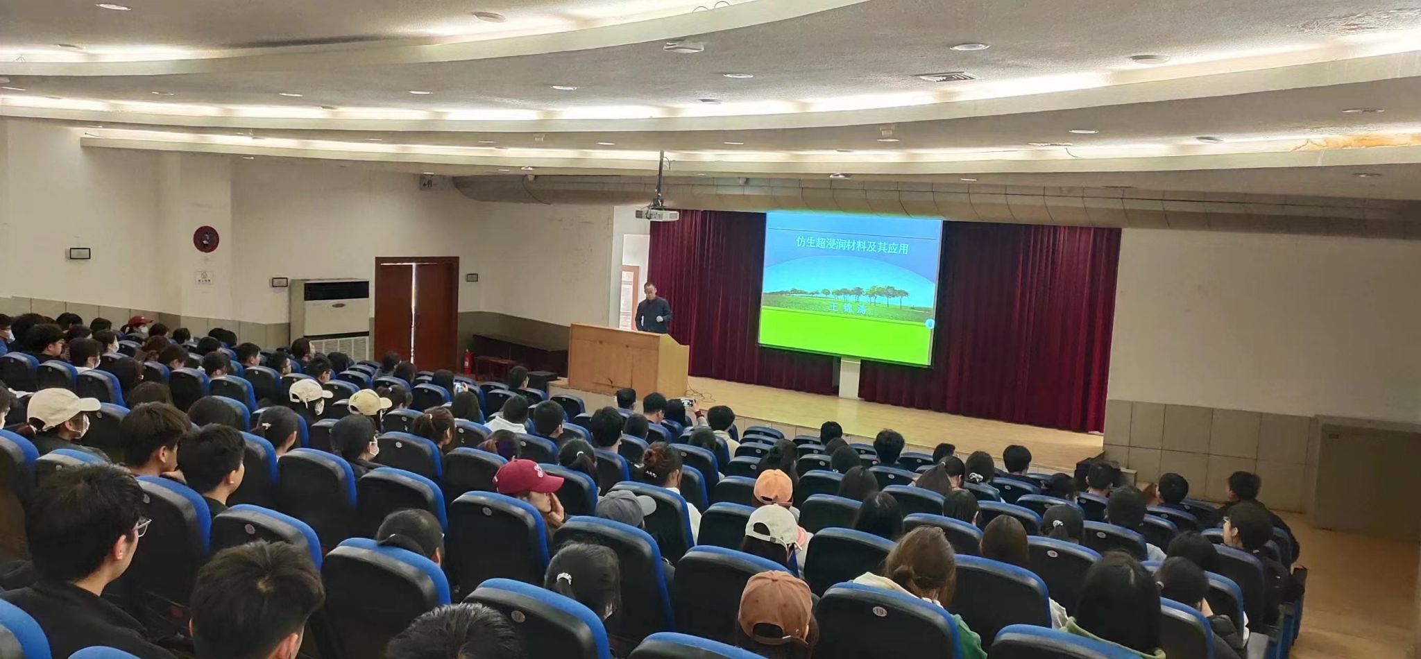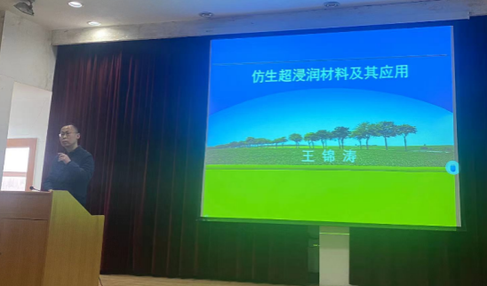 3月24日下午,beat365官网王锦涛博士做了题为《仿生超浸润材料及其应用》的学术讲座。化工学院部分师生参加了此次讲座,讲座在江南校区1号教学楼六楼报告厅举行。