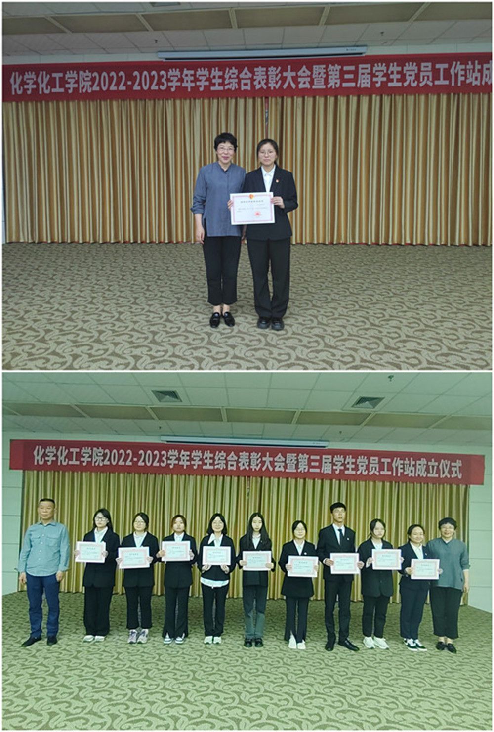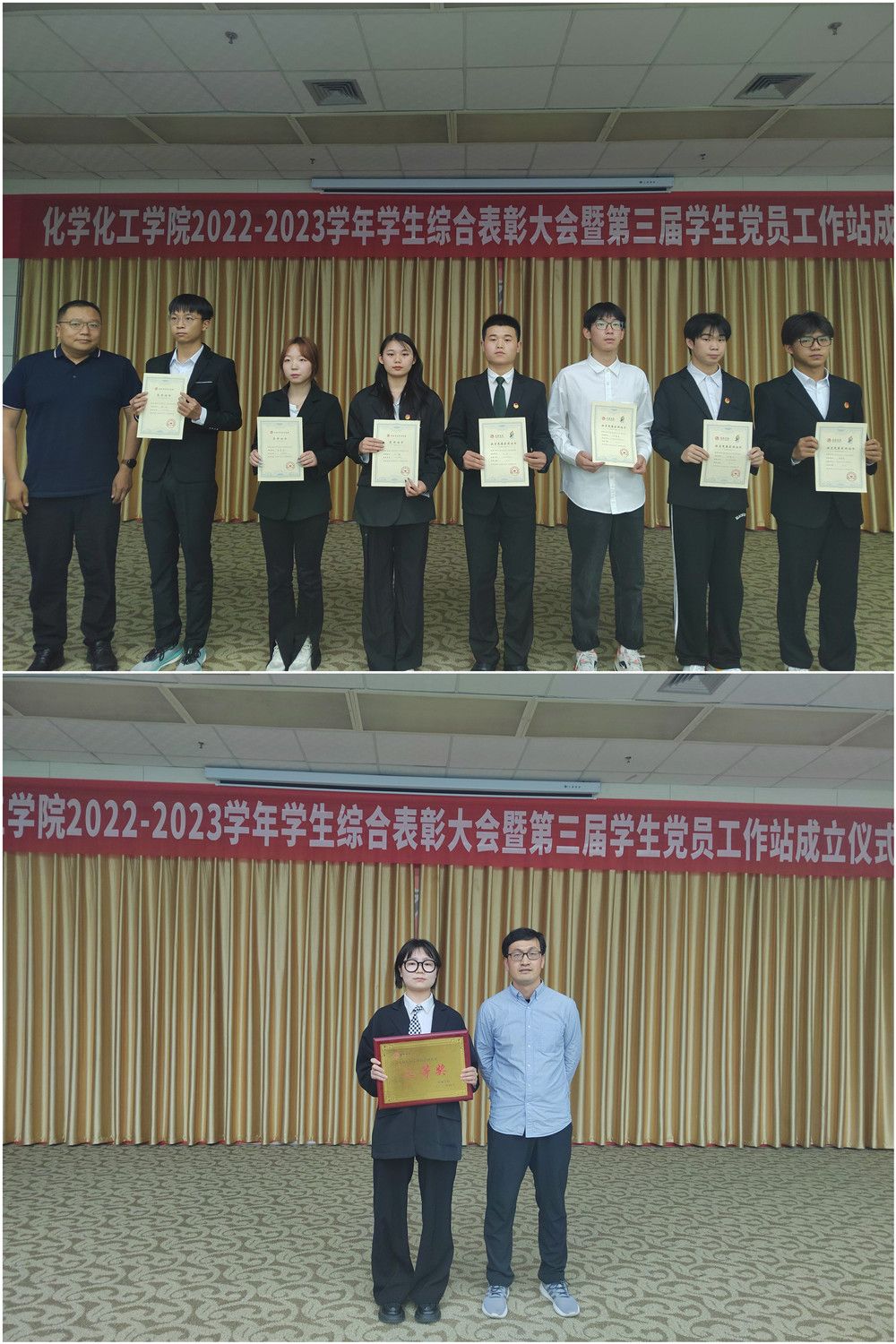 5月16日下午,beat365在线唯一官网在江南校区图书馆报告厅举行2022-2023学年学生综合表彰大会暨第三届学生党员工作站成立仪式。学院党总支书记王永东、院长柳林,副院长袁光辉、副院长黄婷出席表彰大会,学工办主任、系主任、全体辅导员及各班级学生代表参加了表彰大会。大会由学工办主任王瑜主持。