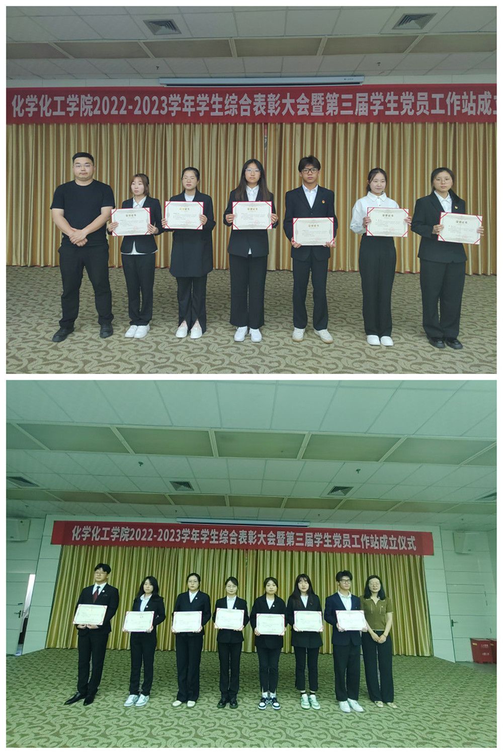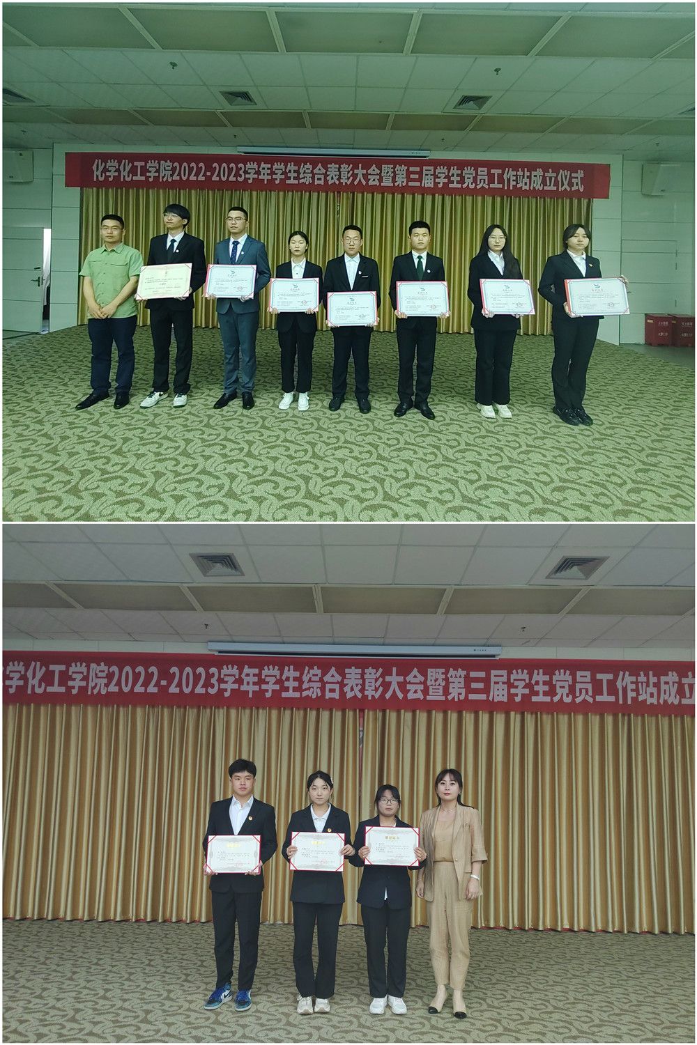 柳林院长、王永东书记为获得国家奖学金、国家励志奖学金、beat365在线唯一官网奖学金的学生代表颁发获奖证书,袁光辉副院长为荣获陕西省第八届“互联网+”大学生创新创业大赛、第五届“中国创翼”创业创新大赛暨第三届陕西“丝路创星”创业创新大赛学生团队颁发获奖证书,黄婷副院长为beat365在线唯一官网“化学之光”科普团优秀志愿者颁发荣誉证书,黄九林老师为校级第四十三届运动会、第十三届健康活力大赛获奖学生代表颁发荣誉证书,张继东老师为校级第五届校园心理情景剧大赛获奖团队颁奖,于正豪老师为beat365在线唯一官网“学生党员联系宿舍”“学霸陪跑团”学业帮扶先进个人颁发荣誉证书,许珂瑶老师为第二届学生党员工作站优秀学生干部颁发荣誉证书。