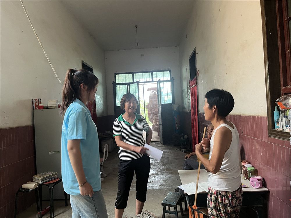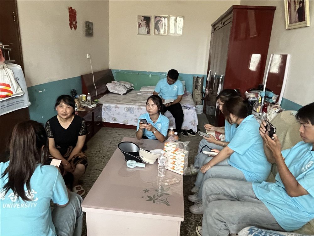 7月7日“汛麦潮”成员成功抵达了渭南市临渭区吝店镇红花店村。团队一行人首先前往吝店镇红花店村了解该村的具体受灾情况,红花店村村委会宣传委员介绍了该村的农业现状,并代表村委会表达了对本次活动的重视和支持。接着胡佳盈同学代表团队介绍了此次活动的目的和相关流程,在与村委会委员商讨交流后,由村委会宣传委员带领“汛麦潮”团队成员随机对数户村民进行了调查走访,从村民们的讲述中,让团队成员直观地了解到,本次水灾对粮食产量及农民收入带来了严重的影响,粮食几乎全部发霉,粮价也因此大幅下跌。大家感受到了自然灾害对农民生产生活带来的巨大打击,体会到了农民们务农的不易。采访结束后团队成员回到村委进行了数据总结与心得交流。