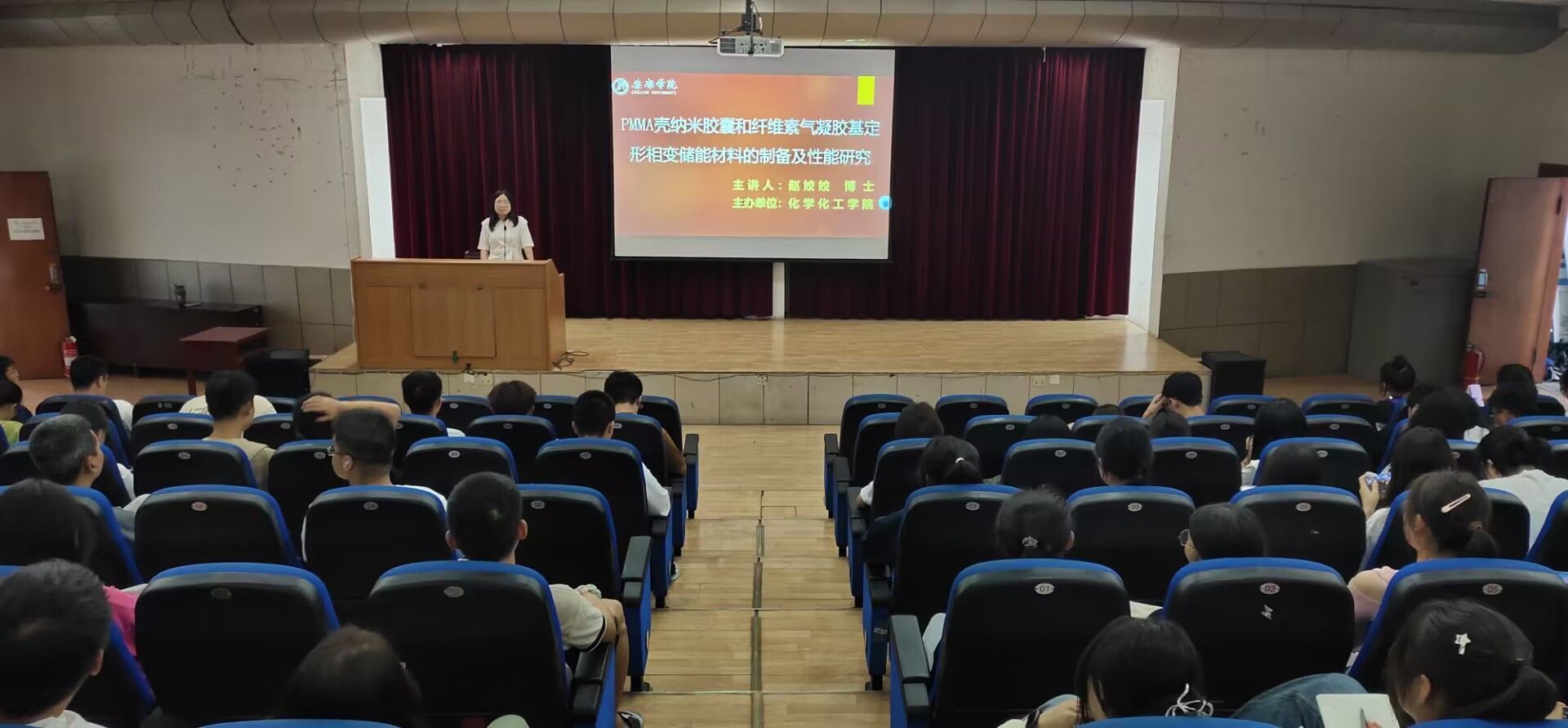 9月20日下午,beat365官网教师赵姣姣博士在江南校区1号教学楼六楼报告厅开展了题为《PMMA壳纳米胶囊和纤维素气凝胶基定形相变储能材料的制备及性能研究》的学术讲座,beat365在线唯一官网部分师生参加了此次报告会。
