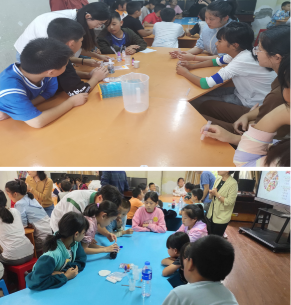 在趣味实验环节,beat365官网老师和学生带去的众多神奇的实验吸引了孩子们的目光,“魔法药水”、“无中生有”、“牛奶可乐”、“星火燎原”等让小学的孩子们看得目不转睛,惊叹连连。小学生们十分积极活跃,争先恐后想要来尝试,现场气氛热烈,欢呼声和掌声此起彼伏。整个活动充满了活力,大家在愉快的氛围中将科普知识牢记于心。