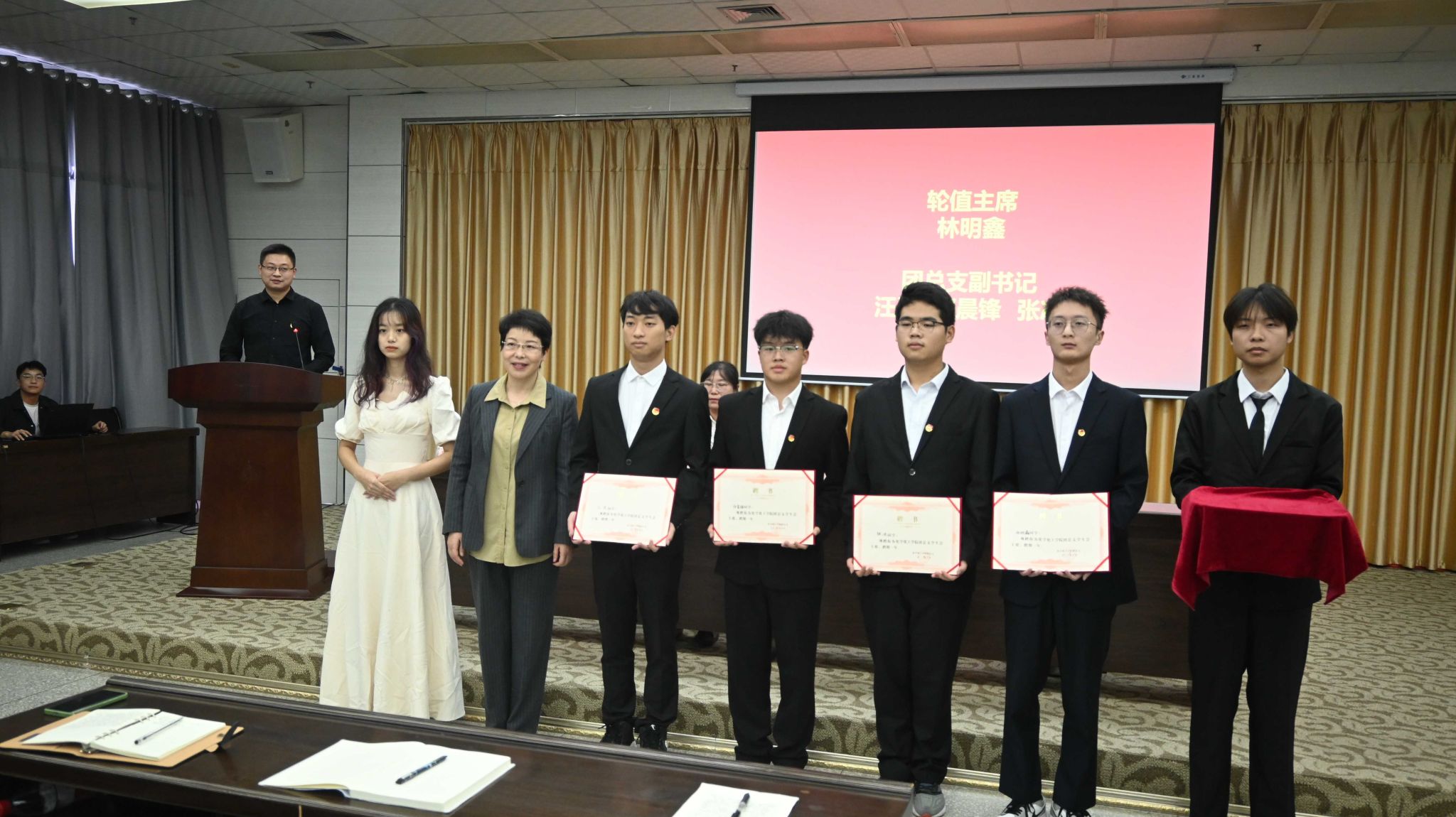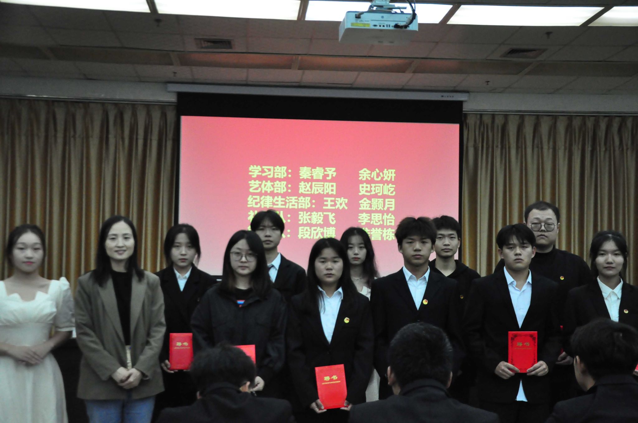 柳林为团总支学生会主席团成员颁发聘书。
