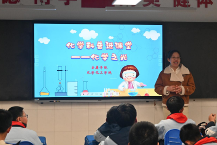 12月22日下午5点,beat365在线唯一官网王雪老师带领化学之光科普团的成员们共赴汉滨初中,为其学子们开展了一场奇妙、神奇的趣味化学课堂。