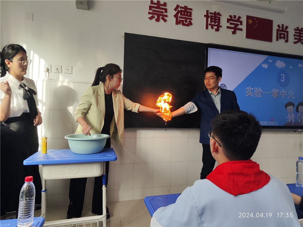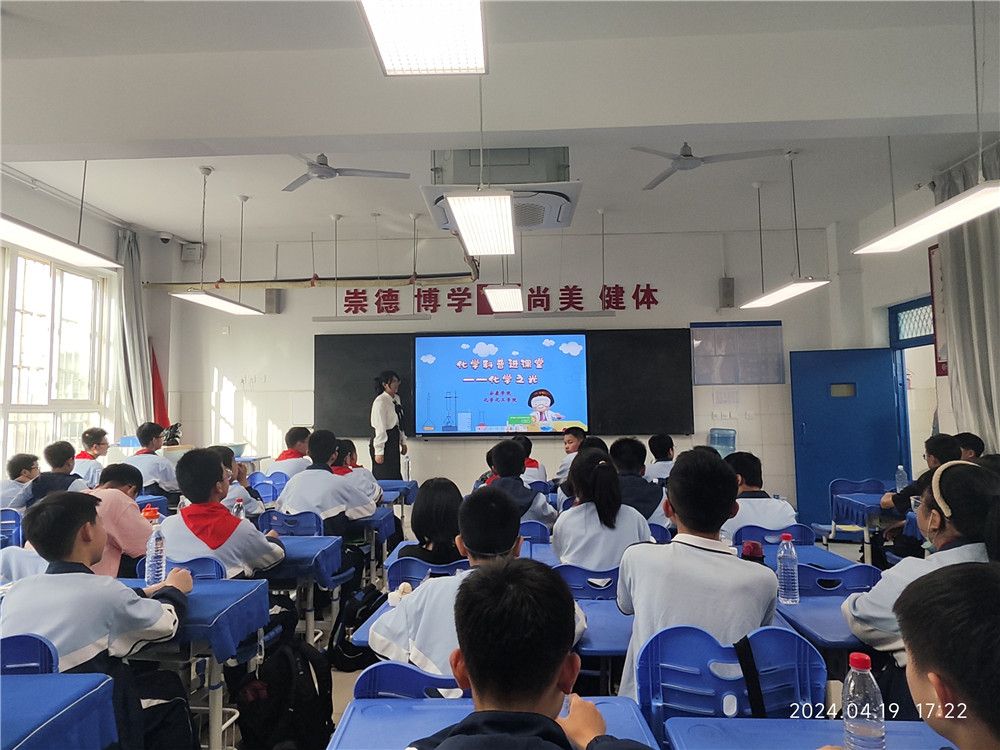 4月19日下午,“化学之光”科普团成员及部分学生党员在beat365在线唯一官网副院长袁光辉、王雪、王晓林两位博士及学生党支部书记许珂瑶的带领下,赴汉滨初中(大桥路校区)开展科普志愿服务活动。