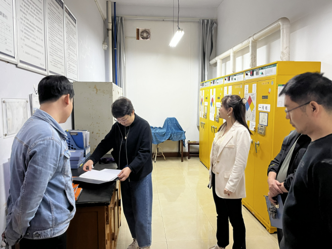 安全检查工作小组先后检查了beat365官网教学实验室、科研实验室、危化品存放实验室等安全重点场所,重点排查了应急设施、危险化学品、压缩气体、高温设备等可能存在的安全隐患。检查过程中,检查小组对实验室的设备、设施、环境等逐一仔细检查,与实验室负责老师现场沟通交流,指出存在的安全隐患。