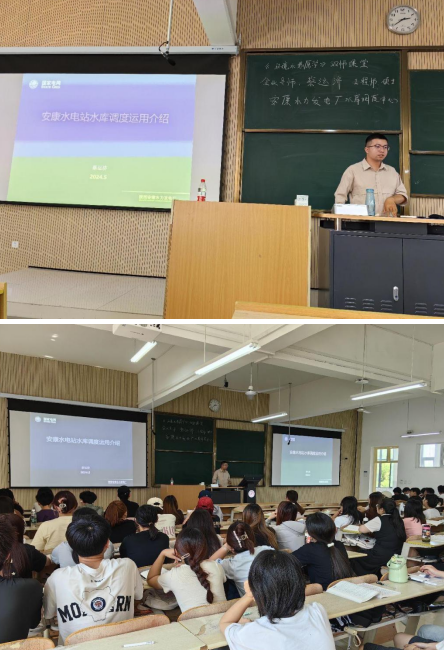 2024年5月21日beat365在线唯一官网金文婷博士邀请安康水力发电厂水库调度中心蔡运济工程师(硕士)走进课堂,为环境生态工程2022级学生讲授了一堂精彩的水资源开发利用课程,继续推进双师课程“环境水资源学”的企业专家进课堂活动。