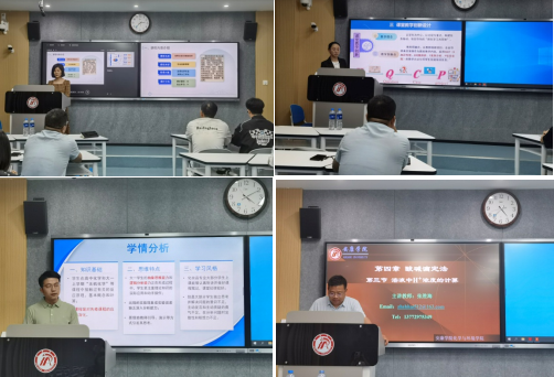 第三阶段5月29日下午14:30在1205参赛选手分别进行模拟授课和说课。参赛教师结合课程教学大纲与教学实践,从课程教学目标、教学目标与毕业要求指标点的支撑关系、教学内容、教学方法、考核方式、学生学习成效达成情况等方面进行说课。比赛中教师们娴熟运用“雨课堂”等智慧平台,整合课程教学资源,融入“以学生为中心”“课程育人”等先进教学理念,既注重知识传授,又注重价值引领,精彩纷呈。