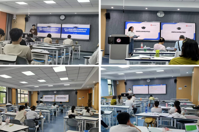 答辩过程分为陈述和质询两个环节。参加答辩的同学都制作精美的PPT对论文的研究背景意义、研究方法、结果分析与结论等部分逐一进行汇报。评审教师就答辩内容进行提问,并就论文存在的问题提出中肯而富有建设性的修改建议。答辩现场秩序井然,评审老师与答辩学生积极互动、充分交流,并对每位学生的答辩情况进行了详尽的记录。