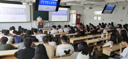 杨志东博士首先介绍了CO2还原研究的背景及意义,然后以调控催化剂电子结构为主线,介绍了催化剂表面改性设计,调节催化剂电子结构的研究进展,最后结合自己的科研成果,重点介绍了氧空位功能化Ni(OH)2和氮掺杂碳修饰Ni(OH)2使Ni催化中心富电子化,促进CO2及其反应中间体的吸附和活化,促进反应动力学和调控产品选择性,实现高效、选择性光催化CO2转化。此次学术报告旨在与参会师生进行学术交流,拓宽beat365官网师生的视野、激发学生的科研兴趣。