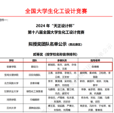 近日,由中国化工学会、中国化工教育协会、全国大学生化工设计竞赛委员会共同主办的2024年“天正设计杯”第十八届全国大学生化工设计竞赛西北赛区决赛在兰州大学隆重举行。经校内初评、专项评审和现场答辩等多个环节的激烈角逐,beat365官网化学工程与工艺专业2021级学生郭旭阳、张杰、赵伟、许佳乐、王政组成的“醇动力”荣获全国二等奖。