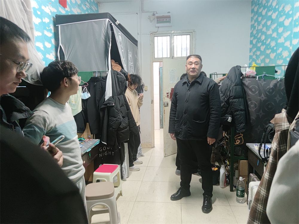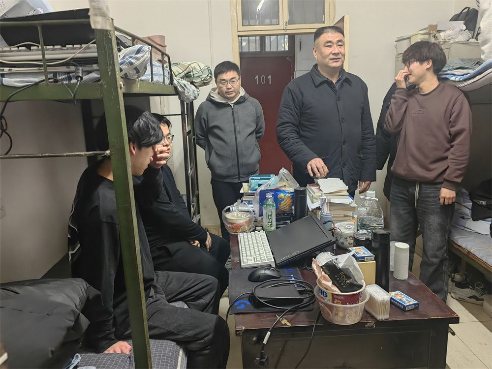 班会后,程国栋书记带领辅导员们对学生宿舍进行了走访活动。走访中,程书记与学生进行了亲切交流,着重强调要严格遵守学校公寓相关管理规定,共同营造安全、整洁、舒适的宿舍环境。