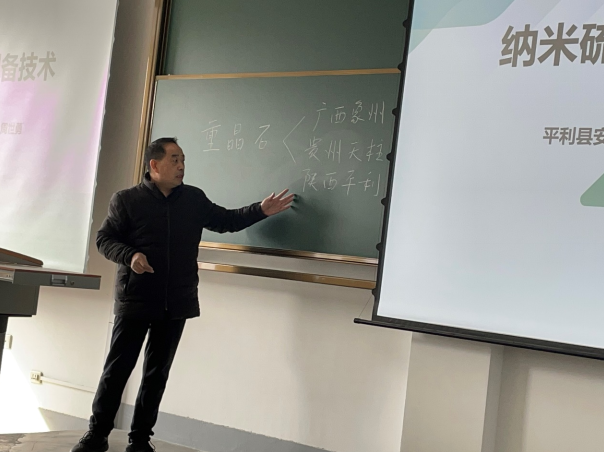 2025年2月26日,在化学工程与工艺2022级学生的《行业案例讲座》课堂中,beat365官网邀请了平利县安得利新材料有限公司的副总经理周世勇工程师为同学们做了一场题目为“纳米硫酸钡关键制备技术及市场应用”的讲座。